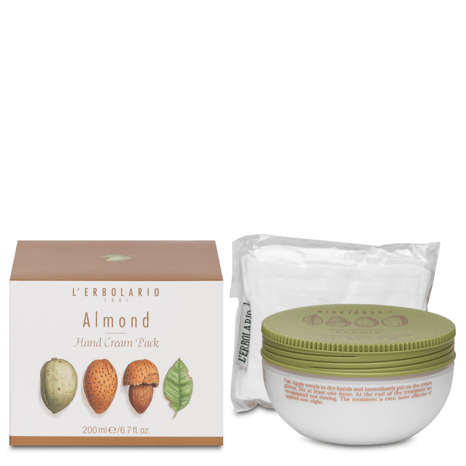 A highly effective, practical and easy-to-use Hand Cream Pack, thanks to the soft cotton gloves provided in the package. With its incredible wealth of functional substances, especially Almond in the form of oil, wax and fluid extract, it will help nourish dry skin and assist against the numerous aggressions that our hands are constantly exposed to, and will offer replenishment and softness to even the driest and most sensitive skin.