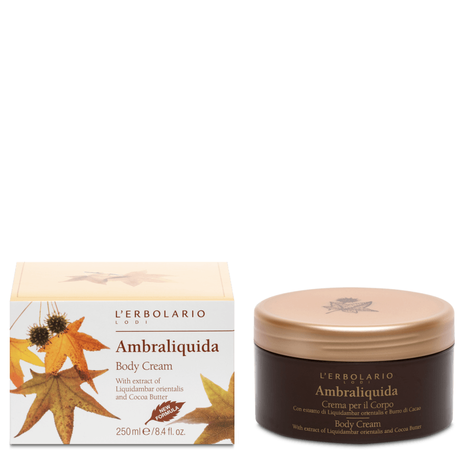 In a sheltered Liquidambar orientalis forest, the wind from the coast, the warm breeze of the irreverent Meltem awakens the red and gold leaves sleeping on the ground: their dry scent blends with the unexpected hints of honey and spices. This is how the Ambraliquida perfume was created, a delicate fragrance that imbues this Body Cream with its Byzantine aura, distinguished by the colourful gifts of the vast land of Turkey. Combined with the softening Butters of Pistachio and Cocoa, we have the yellow gold of the nourishing oils of Pistachio and Sesame and the extracts of Liquidambar orientalis which, with their hint of amber-red, nourish every part of your skin.
