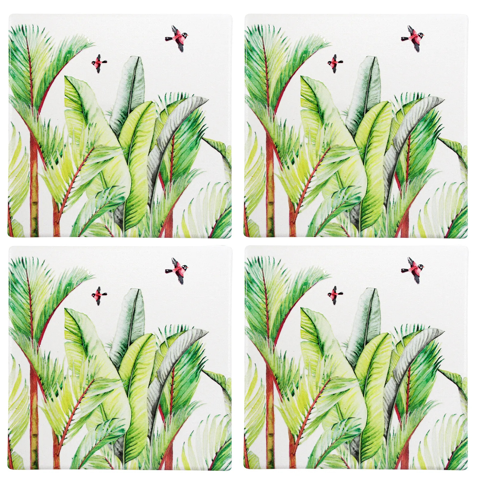 These conspicuous ornamental coasters showcase similar tropical motifs that will spread a revitalizing charm around one's space. With their surfaces glazed with images of exotic tall palm trees, these coasters combine longevity, durability, and functionality.
