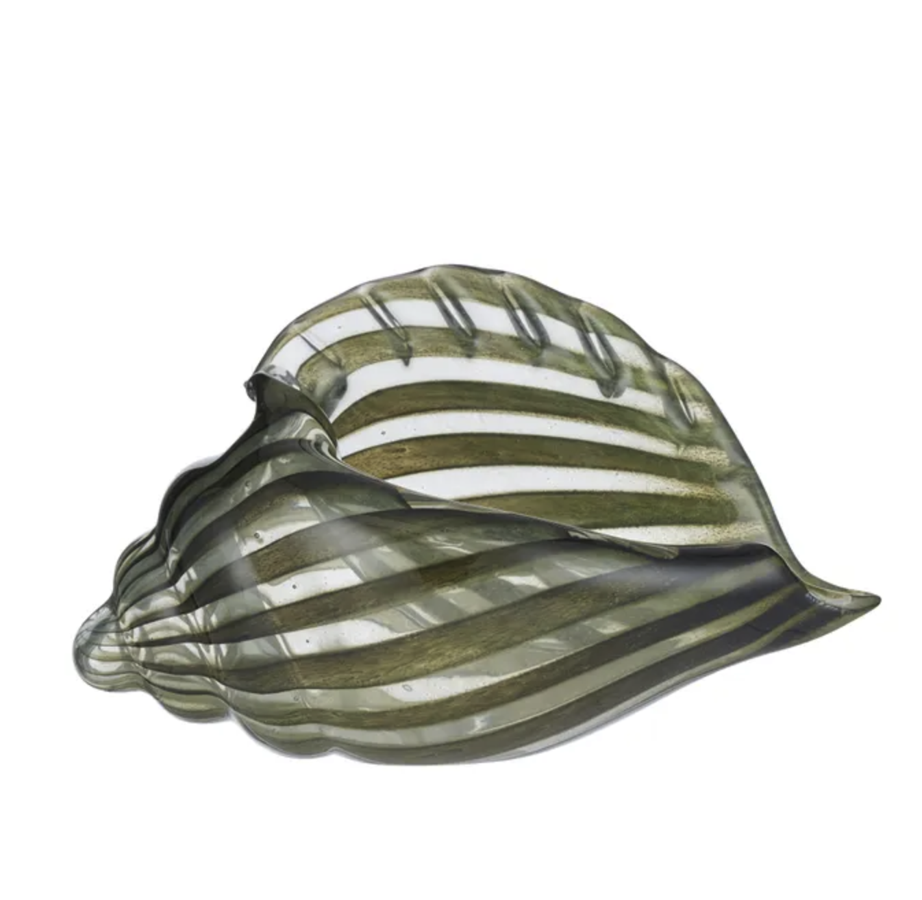 Conch Shell Glass Sculp 22x11x13cm Olive - BULK ITEM