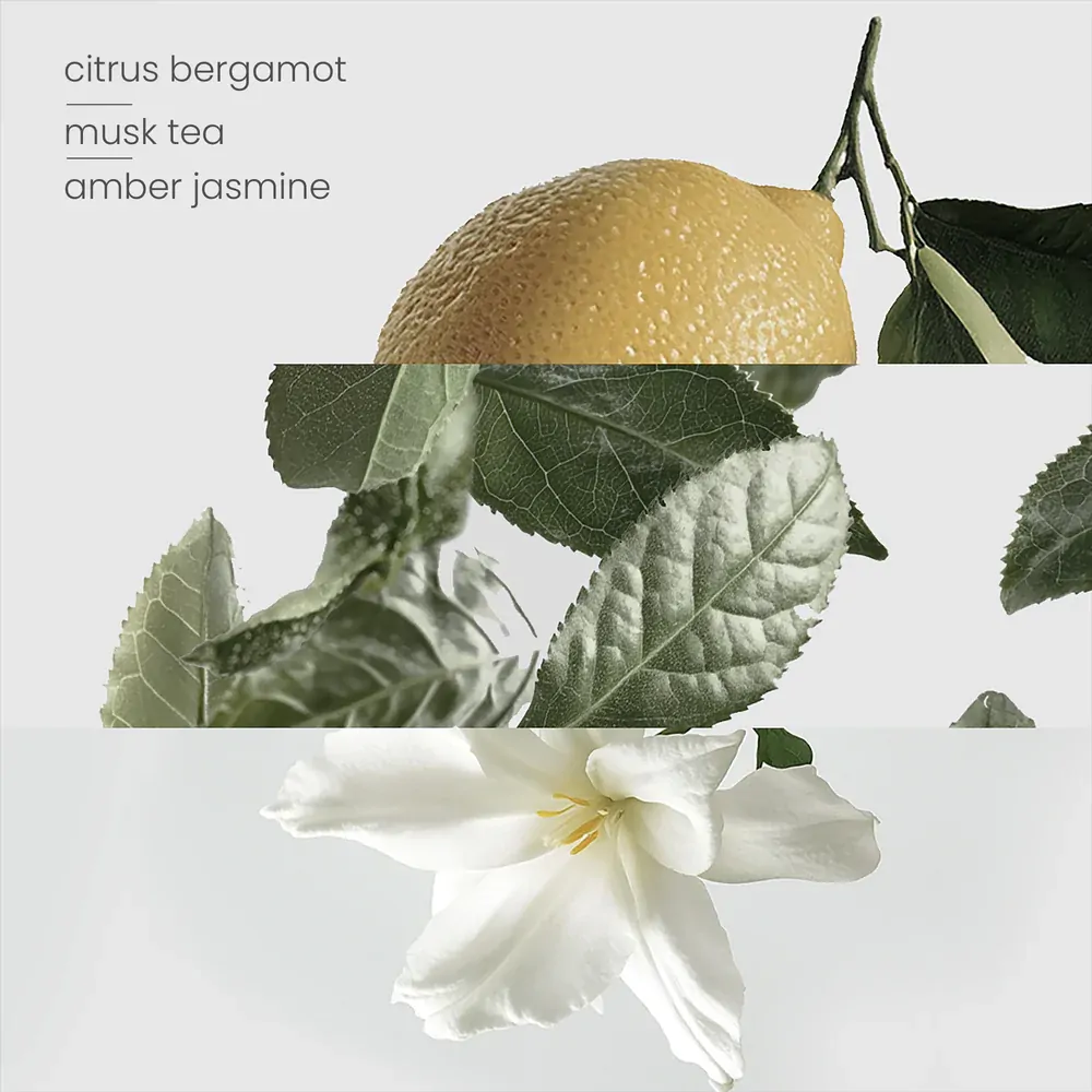Our highly seductive fragrance with simple, elegant, aromatic accords of fresh citrus, bergamot, musk, tea, amber and jasmine.