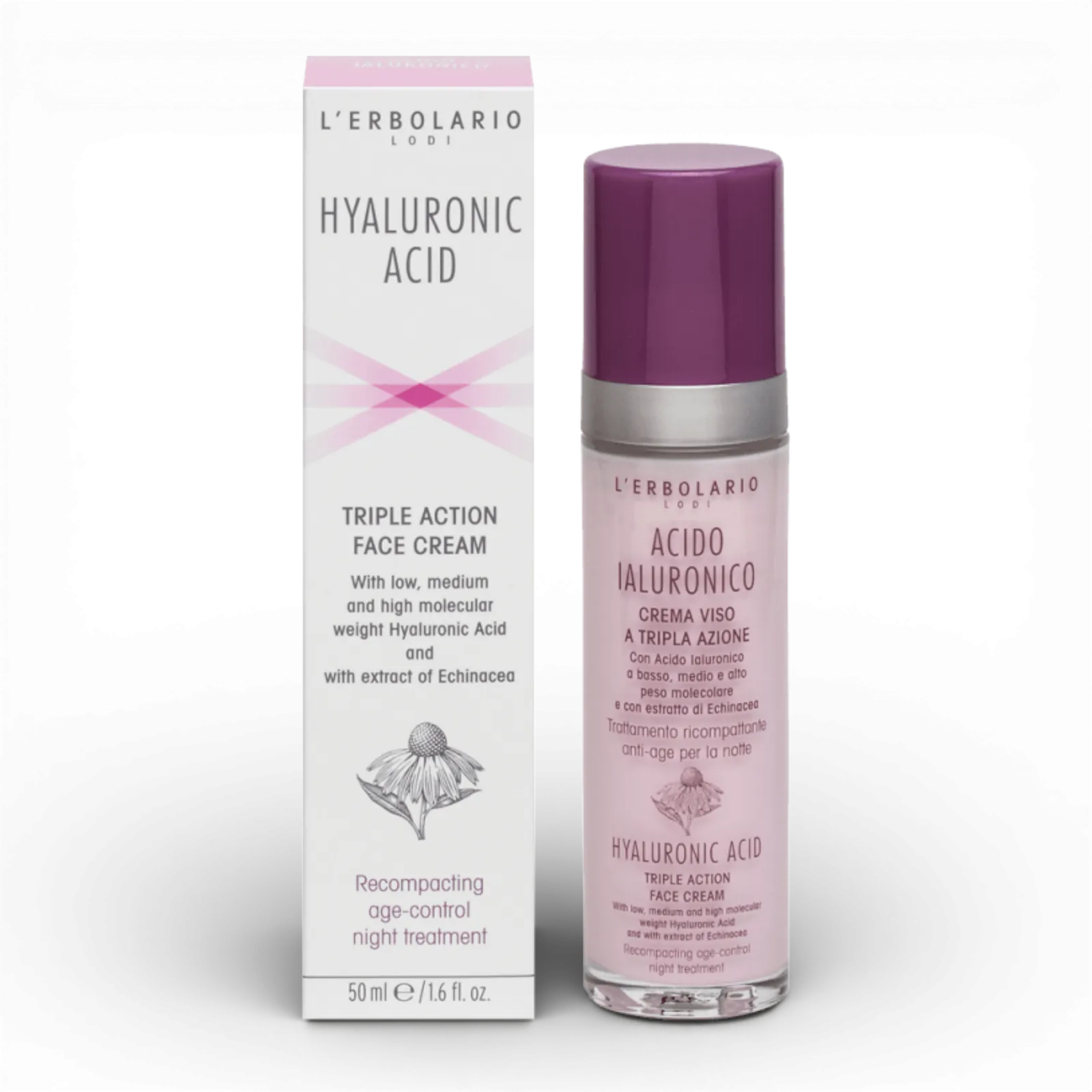 At night, facial skin deserves a relaxing and restorative rest, letting a tireless molecule work to help you wake up with glowing skin. This is Hyaluronic Acid, a cosmetic ingredient with an excellent hydrating effect, involving three levels of the skin, since it acts with low, medium and high molecular weights: it prevents the loss of moisture towards the outside, guarantees the right level of hydration, and helps to promote the natural production of Collagen, all for the benefit of your skin, which feels firmer and less subject to creases and wrinkles. Night-time brings other cosmetic benefits thanks to this treatment, enriched with Extract of Echinacea, which helps stimulate the physiological production of hyaluronic acid, as well as the presence of Alpine Rhododendron stem Cells, with an anti-dehydrating and highly protective action.