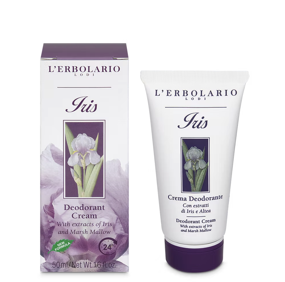 The unique scent of Iris will provide long-lasting freshness, thanks to this pleasant Deodorant Cream. With its very delicate formula, it effectively eliminates the unpleasant scent of perspiration and helps to inhibit microbial growth without altering your skin's natural flora. All this combined with the aqueous extracts of Iris and Marsh Mallow, which ensure gentle protection for the delicate skin of the underarm area.