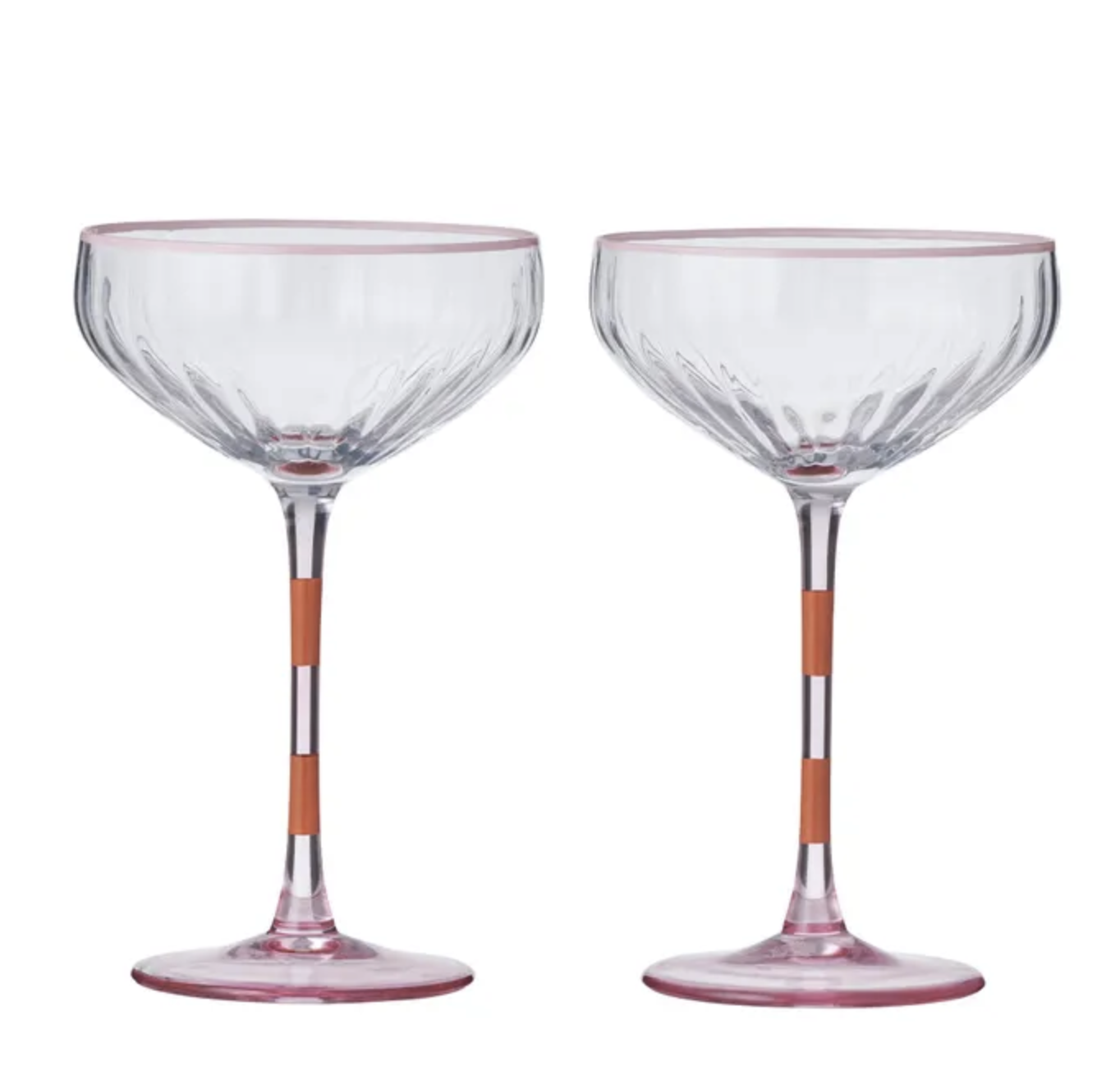 Lena S/2 Glass Rib Coupe 11x18.5cm Pink - Orange