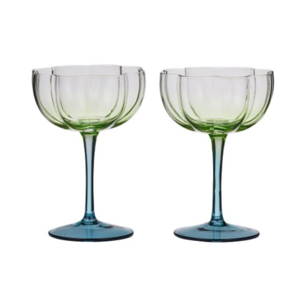 Lotti S/2 Tulip Glass 11x15cm Green/Blue