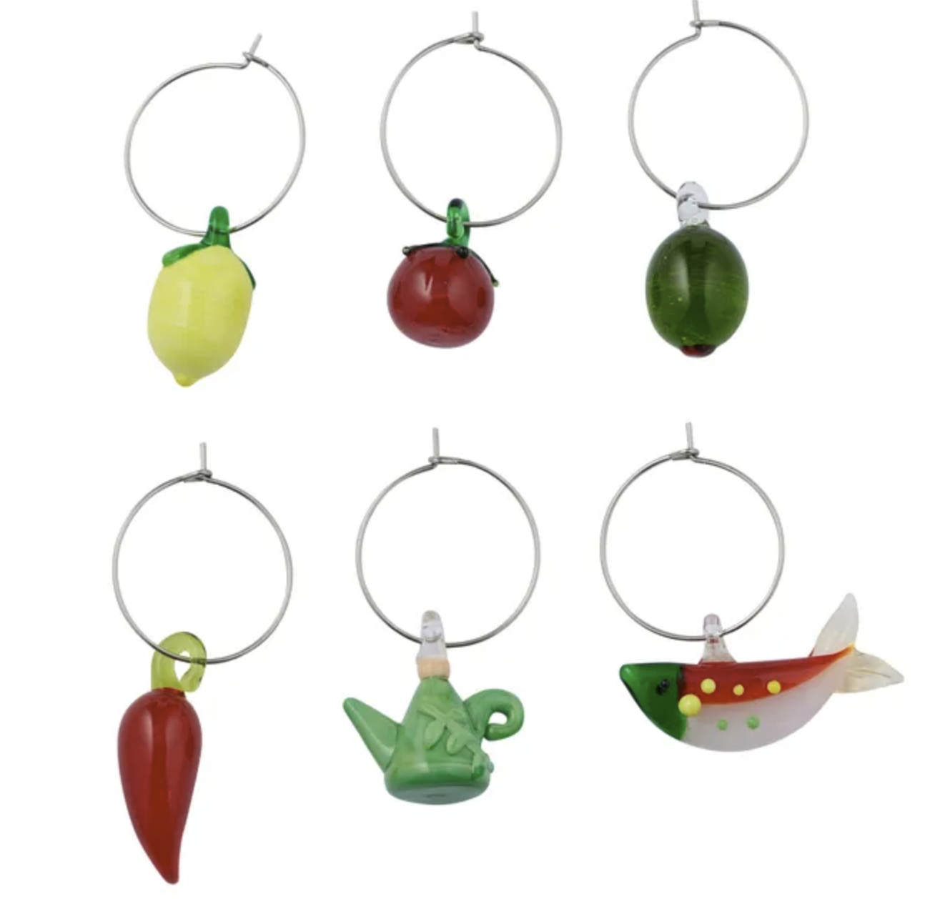 Mangia S/6 Glass Wine Charms 2.5cm