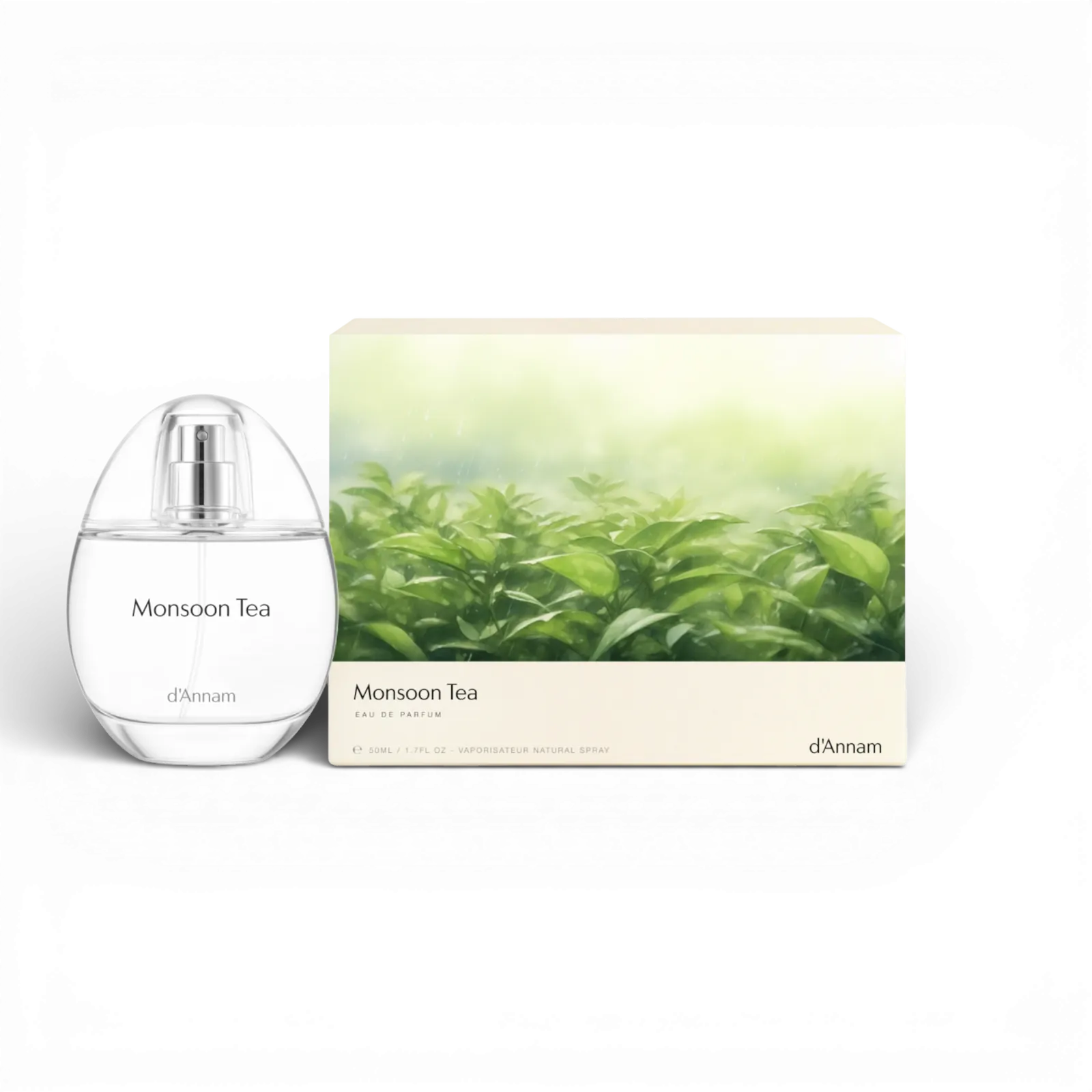 Monsoon Tea by D’Annam captures the serene clarity of freshly brewed Vietnamese green tea after rainfall. Where most tea perfumes lean dry and leafy, this fragrance recreates the full experience — from leaf to stem to the gentle steam rising from a newly poured cup.