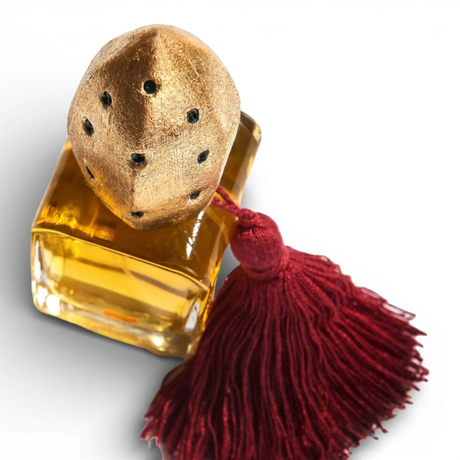 The miracle slowly unfolds from sunlit flowers through a sea of honey and glorious fenugreek, stirring our hunger into clouds of swirling darkness, golden hope and cindered skies. A perfume of darkness that slowly explodes into delirious, mysterious light, a Talisman of blood, seething with shadows and burning magic.