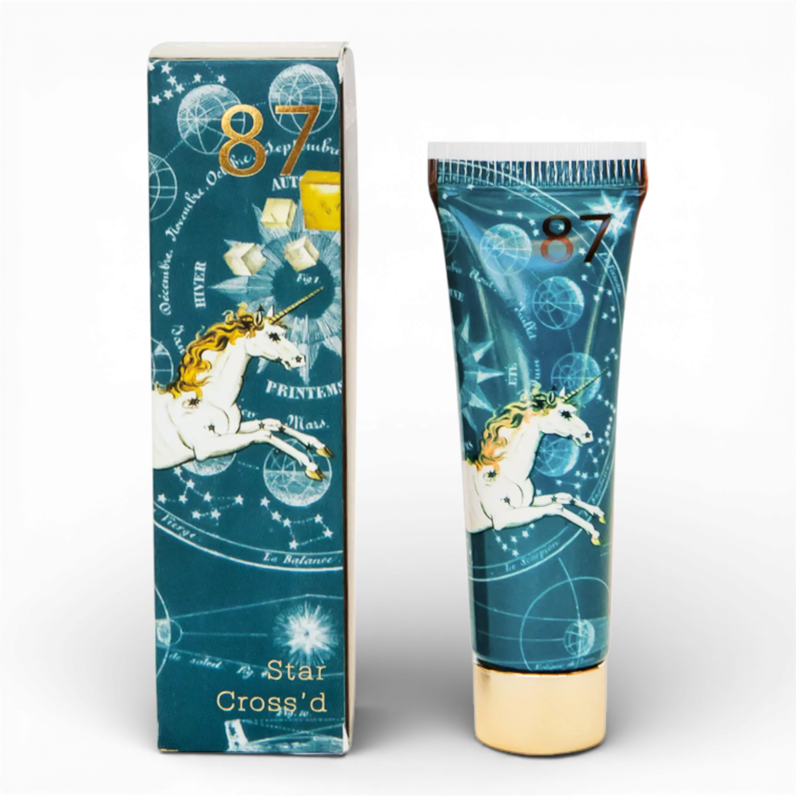 The Star Cross'd hand cream in a petite size is a sumptuous skin-pleaser for when you are out and about. Formulated with Shea Butter, Green Tea and Vitamin E for intense hydration and scented with Citrus Leaves, Water Lily, Vetiver and Frankincense your skin will be hydrated and lightly scented.