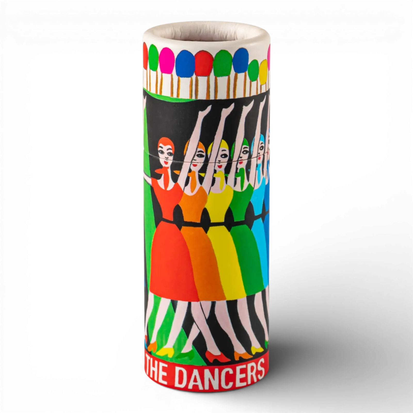 Our small cylinder matches featuring 6 dancers dressed in vibrantly coloured dresses.