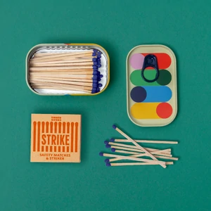 The gorgeous tin keeps matches dry and protected, making it wonderful for outdoor adventures, emergency kits, or simply having on hand for those candlelit moments.